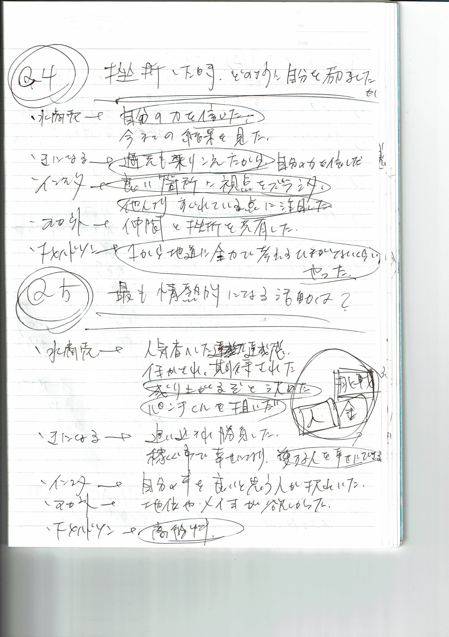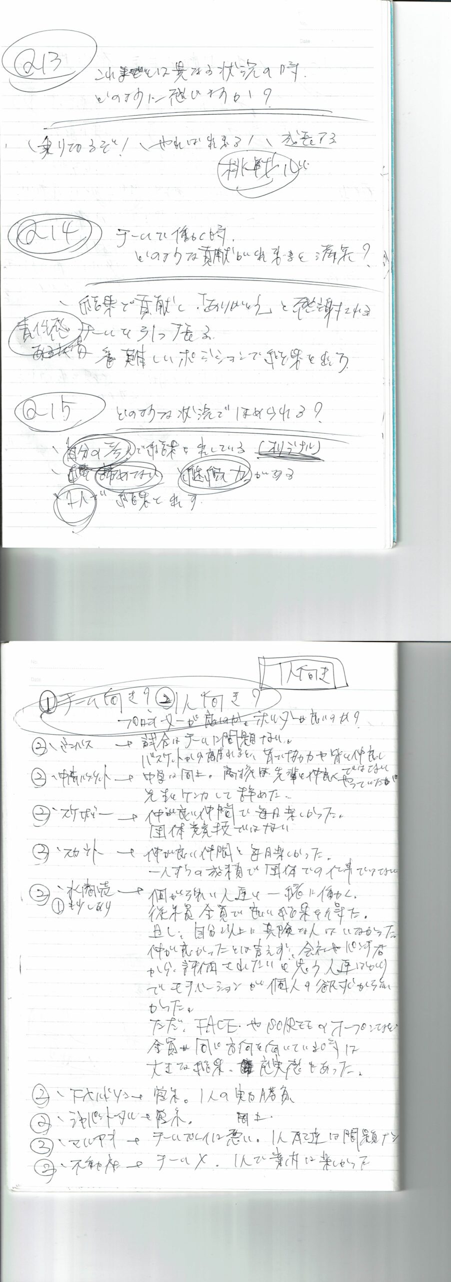 - 沢山の経験をしたい→ 今までの人生で経験が役に立っている。経験する事が好き。自分の可能性を広げるため。経験しないと実際はわからない事が多いから。