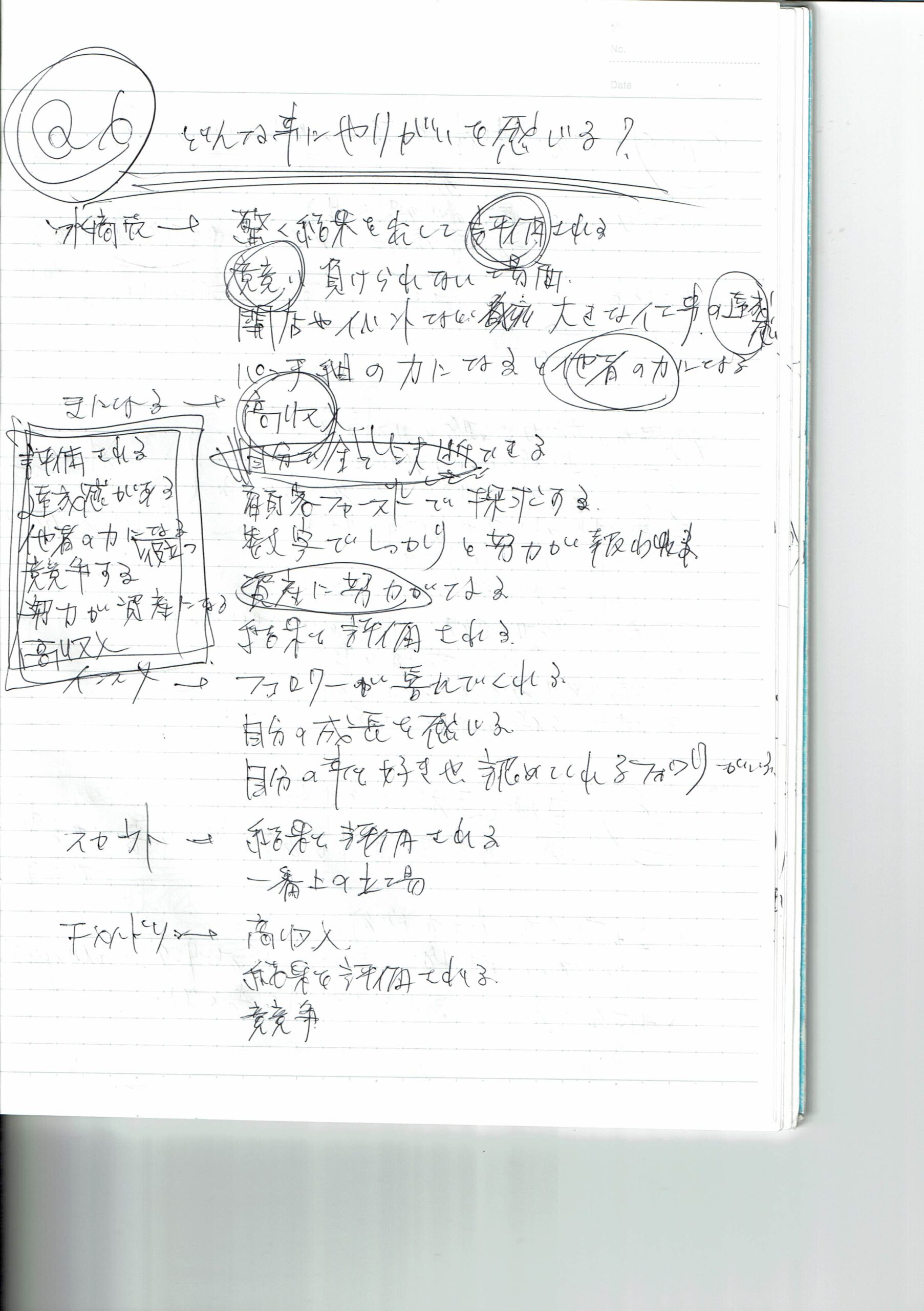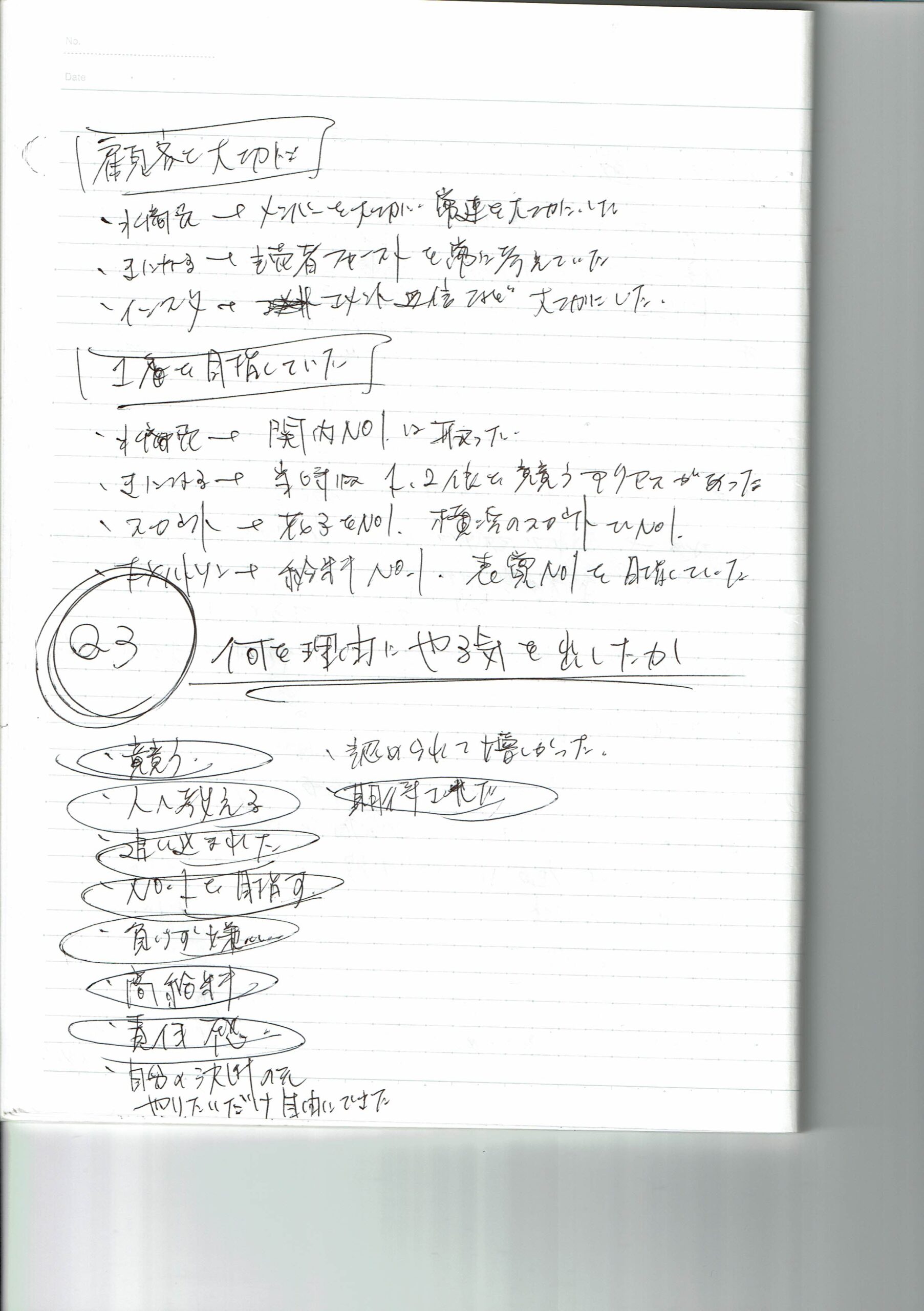 - 周りの人を支え力になりたい→ 人が喜ぶ事が好きだから。自分の事を好意的に接する人へは今以上に幸せになってほしいから。ありがとうの言葉が好きだから。満足感があるから。