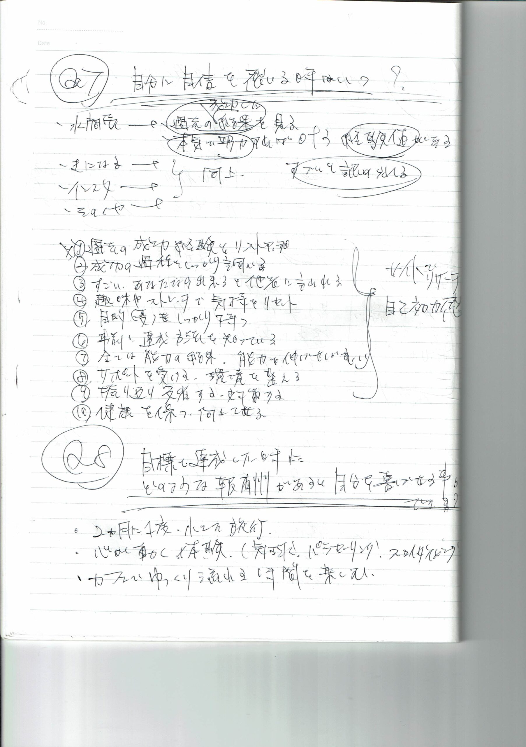 wise mappingにまとめていた、自己特性〈3回、自己探求質問〉と、自己分析〈27.28.29回、自己分析〉。