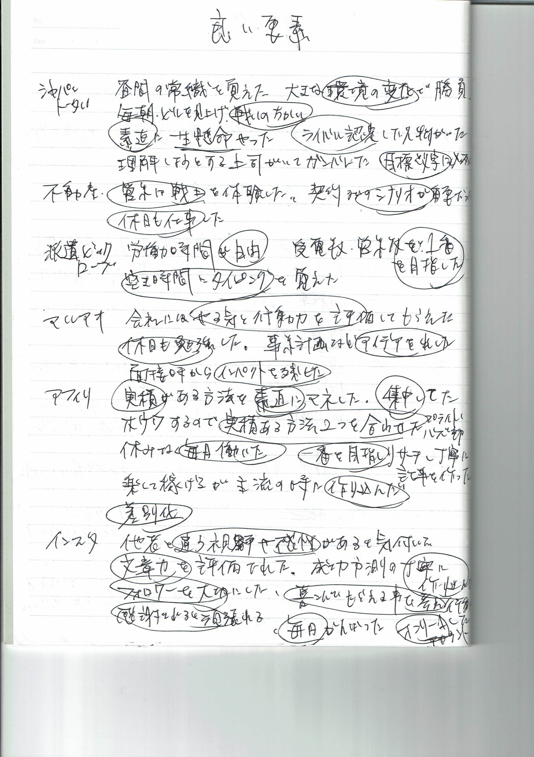 - 継続力→ 会社であれば最低1年勤務と昔から決めていた。何事も継続しなければ良さ悪さを理解できなく自分の力にもならない。